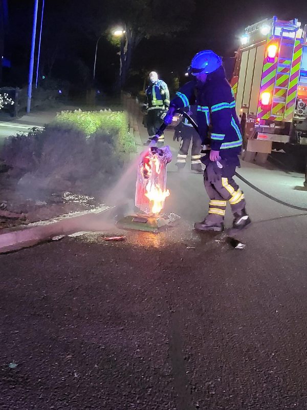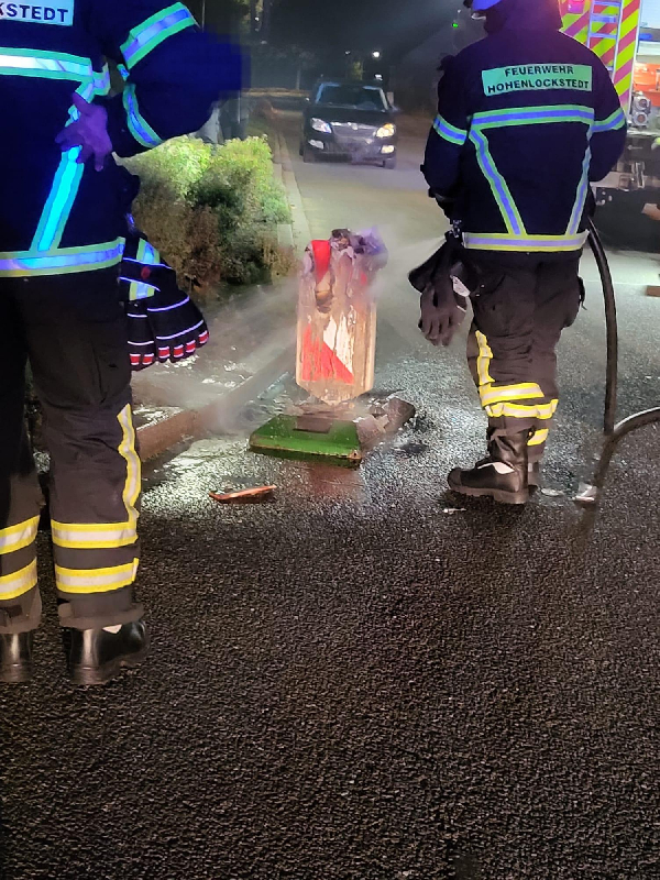 Unbekannte setzten am Abend eine Absperrleitbake in Brand.