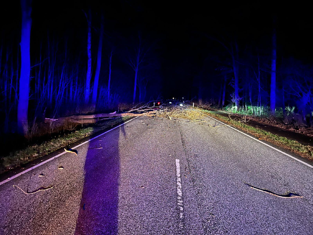 Ein Baum ist auf die Bundesstraße 77 im Bereich des Flugplatzes Hungriger Wolf gestürzt.