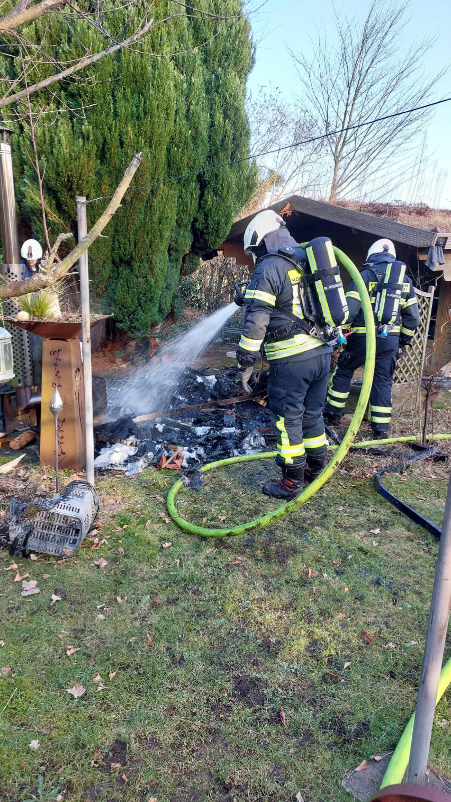 Vor Ort konnte der Vollbrand durch einen Trupp unter Atemschutz schnell unter Kontrolle gebracht und abgelöscht werden. Die mitalarmierten Kräfte der weiteren Ortsfeuerwehren mussten vor Ort nicht mehr tätig werden.