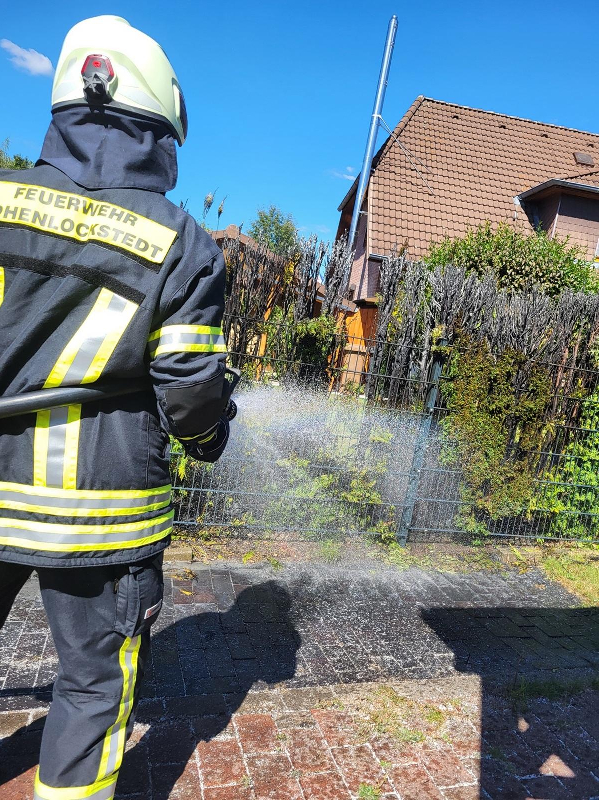 Nach Eintreffen hatten Anwohner bereits erste Löschmaßnahmen mit einem Gartenschlauch durchgeführt, wodurch wir nur noch mit dem Schnellangriff nachlöschen mussten.