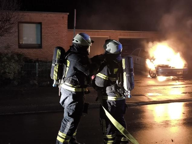 Am frühen Morgen kam es aus noch ungeklärter Ursache zu einem Fahrzeugbrand an einem Gebäude.