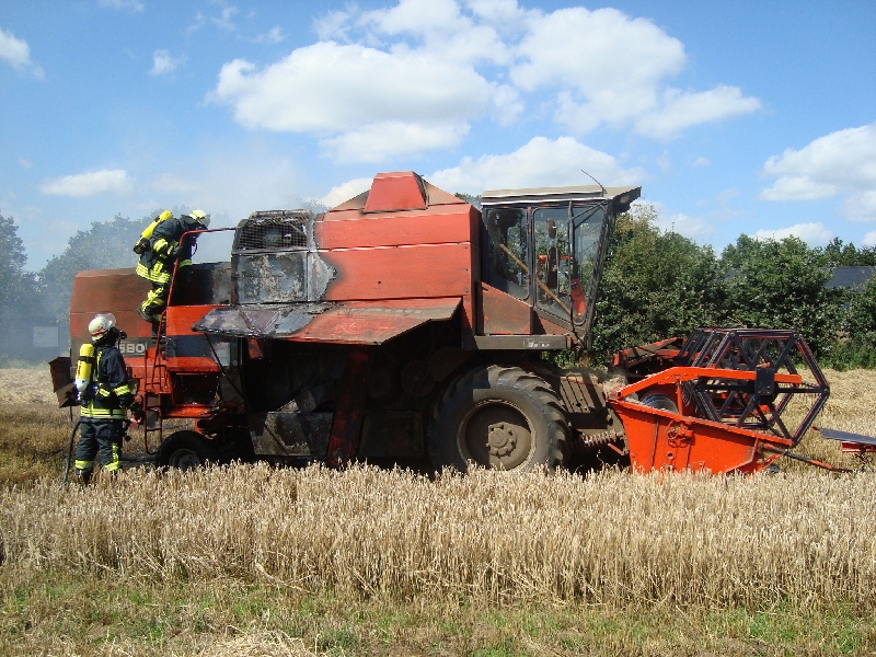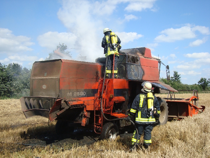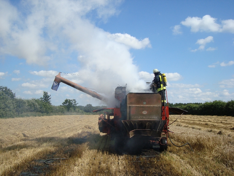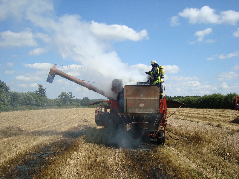 Ein Mähdrescher ist auf einem Feld in Brand geraten.