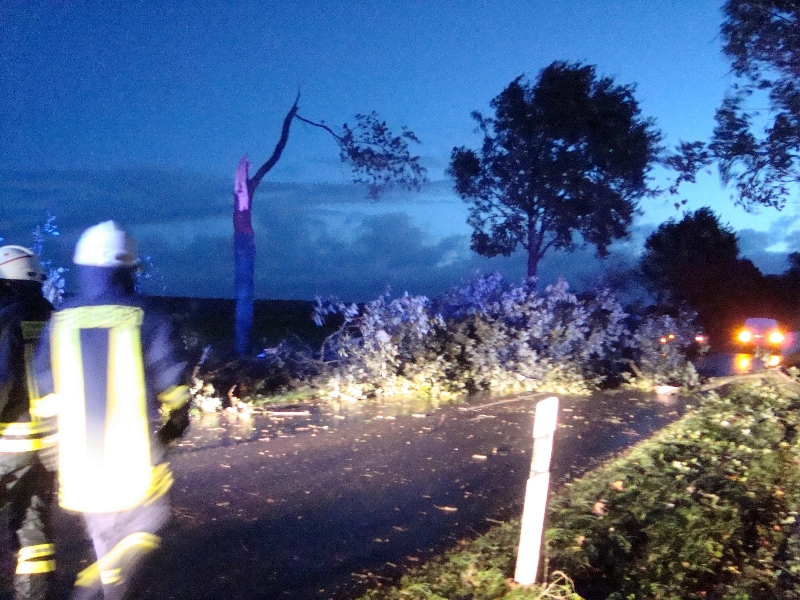 Die Ortsfeuerwehr Springhoe - Hohenfiert beseitigte die Gefahrenstelle unmittelbar nach eintreffen und machte die Fahrbahn wieder frei.