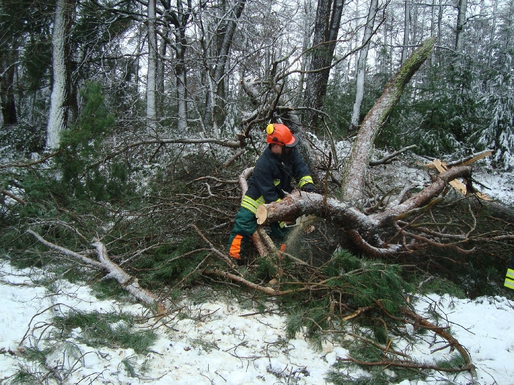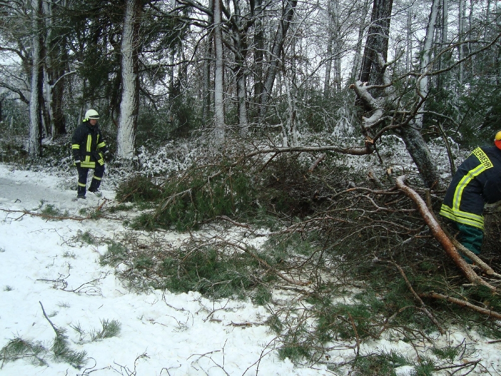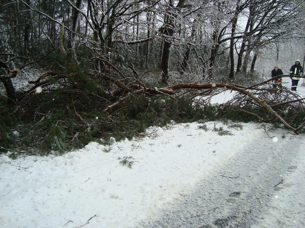 Durch den starken Schneefall und der damit verbundenen schweren Schneelast ist ein Baum auf die Fahrbahn der L121 in Springhoe gestürzt.