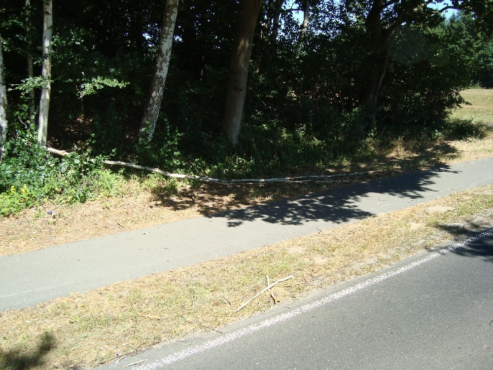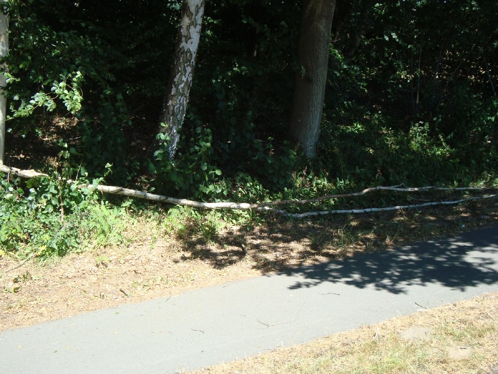 Nach Eintreffen am Einsatzort war der schmale vertrocknete Baum bereits von der Fahrbahn der Kreisstraße geräumt worden.