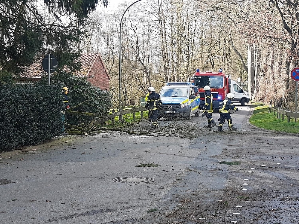 Ein Baum ist durch Sturmeinwirkung am Nachmittag auf die Straße gestürzt.