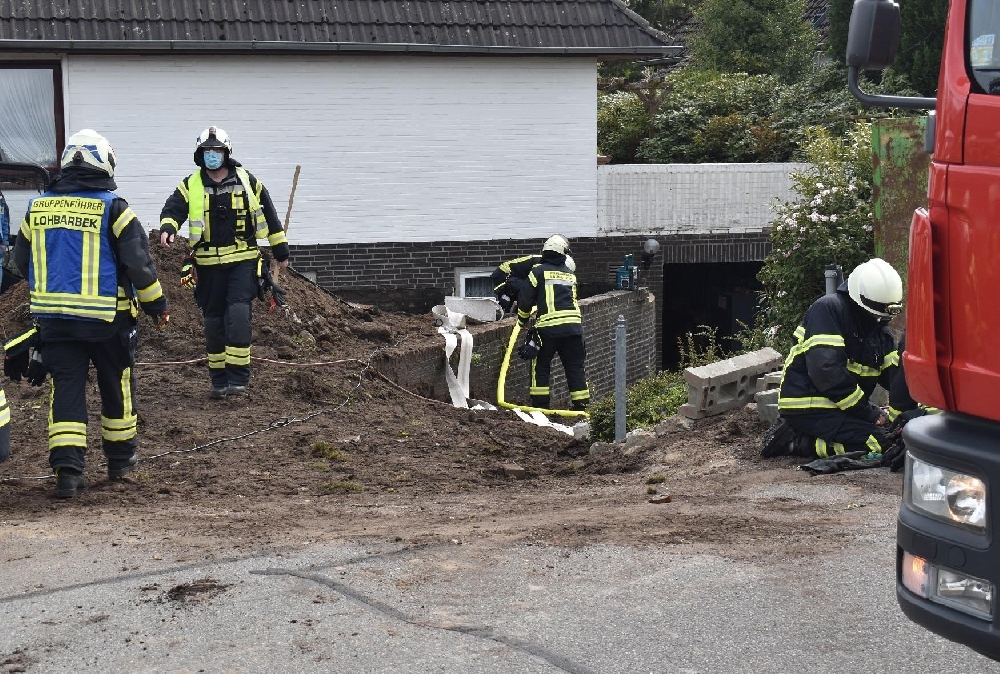 Ein Bagger hat zur Mittagszeit bei Bauarbeiten eine Wasserzuleitung eines Einfamilienhauses beschädigt, wodurch das austretende Wasser nun in den Keller des Hauses zu laufen drohte.