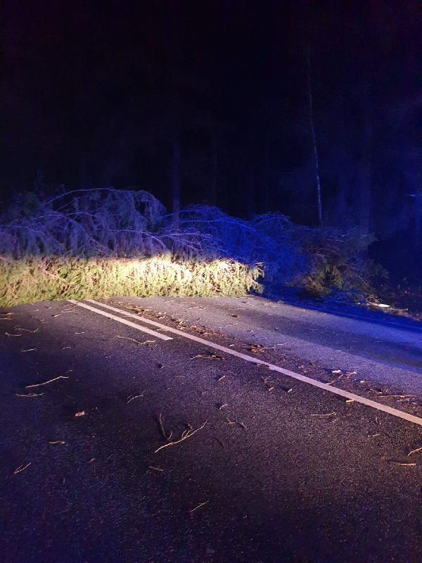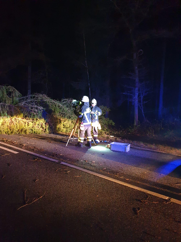 Ein größerer Baum ist quer auf die Bundesstraße 77 gestürzt und wurde von den Kräften der Ortsfeuerwehr Ridders mittels Motorsäge beseitigt.