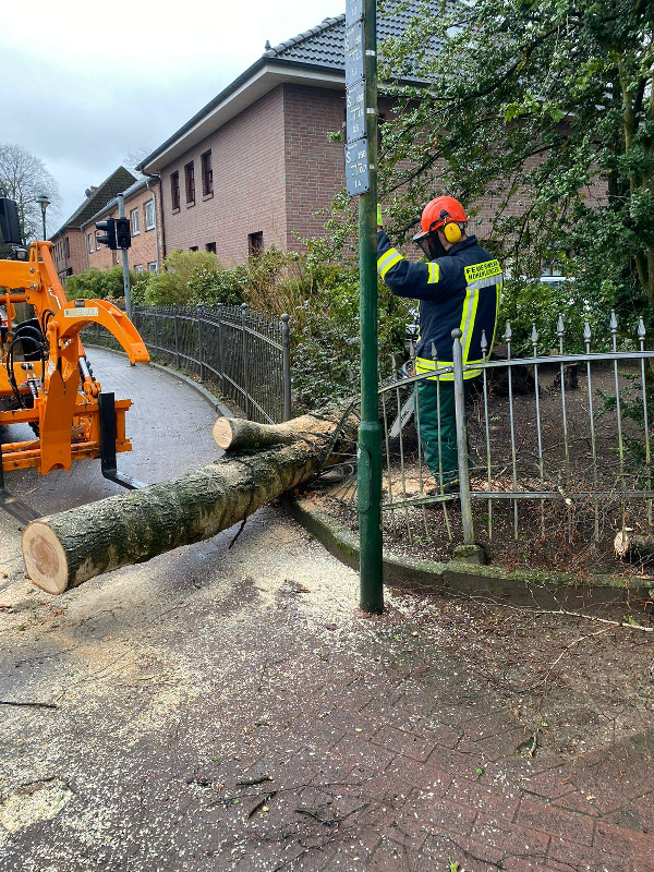 Kieler Straße gestürzt und musste mittels einer Motorsäge zerteilt und anschließend von der Straße geräumt werden.