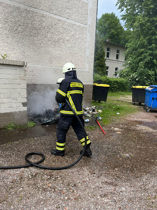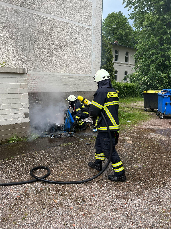 Bei Eintreffen der ersten Einsatzkräfte war bereits nicht mehr viel von der Tonne übrig.