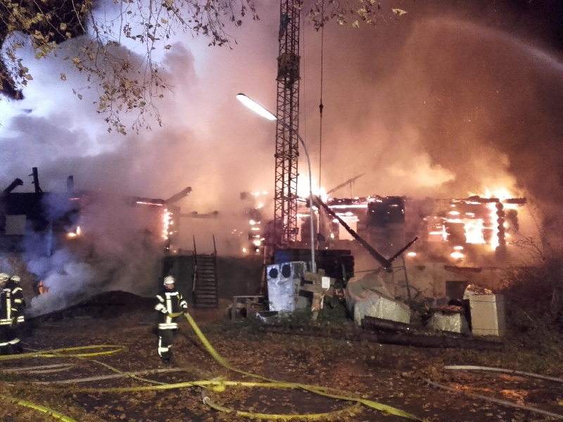 Mehrere im Kellerbereich des Holzhauses gelagerte Gasflaschen explodierten im Verlauf des Einsatzes. Ebenfalls stellte ein unmittelbar am Gebäude aufgestellter Baukran eine Gefährdung für die Einsatzkräfte dar, weil befürchtet wurde, dass das Stahlgerüst des Kranes durch die Hitze zusammenbrechen könnte.