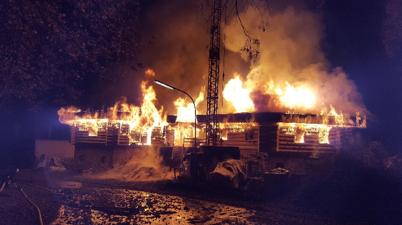 Das Blockbohlenhaus ist von dem Besitzer in jahrelanger Eigenarbeit errichtet worden und hauptsächlich mit Naturbaustoffen erstellt worden. Durch diese besondere Bauweise fand das Feuer reichlich Nahrung. Ein Bagger war erforderlich, um die Brandruine so auseinander zu ziehen, dass alle Glutnester gelöscht werden konnten. Die Nachlöscharbeiten dauerten bis in den Vormittag. Im kommenden Januar wollte der Eigentümer in sein neues Haus einziehen.